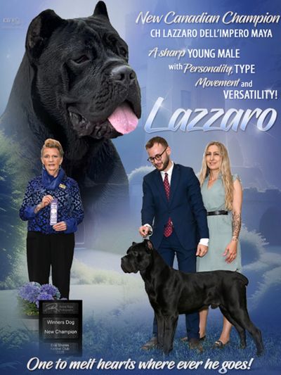 2022, in the time frame of 4 months he achieved #2 Cane Corso in Canada and #1 Cane Corso in Ontario out of 21 shown. He achieved the CKC 2nd Top Show Dog award as well.